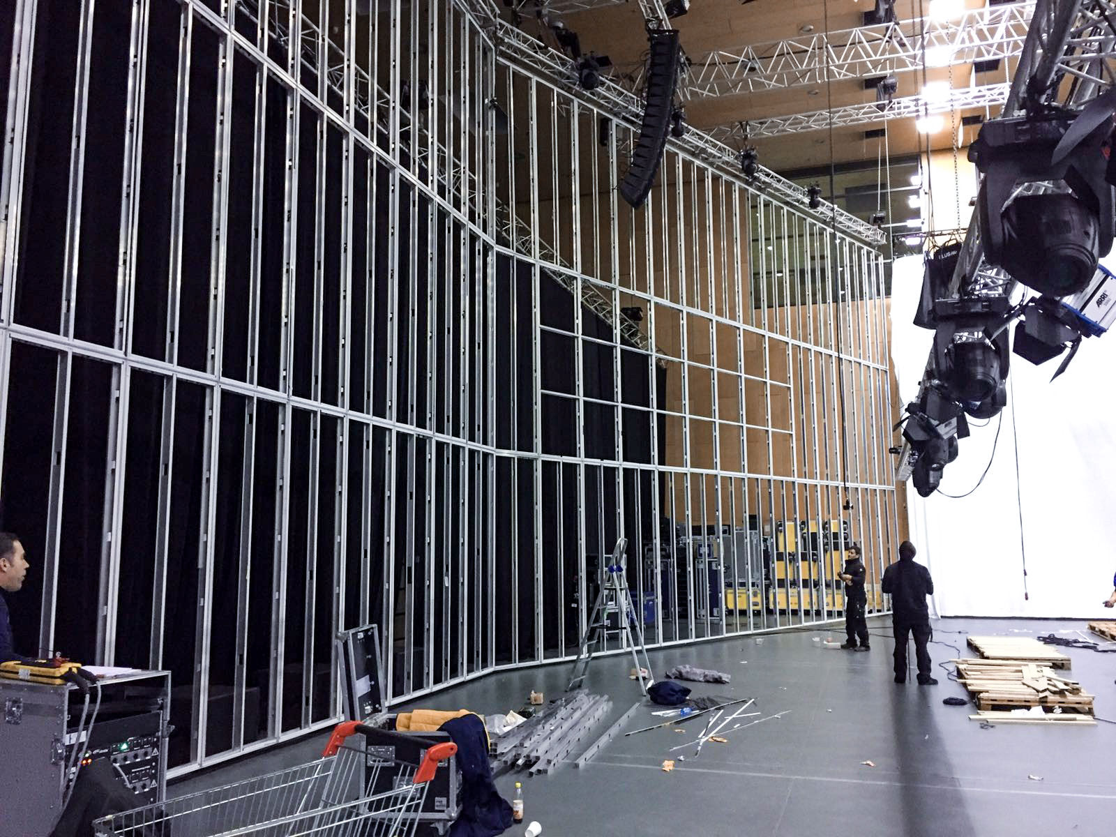 One frame for all applications: double-sided wall panels, integrated monitors, complete technical applications, backlit displays, seamless printed fabric graphics. Assembly formular: x m length and 5 m height. - Solid and Durable